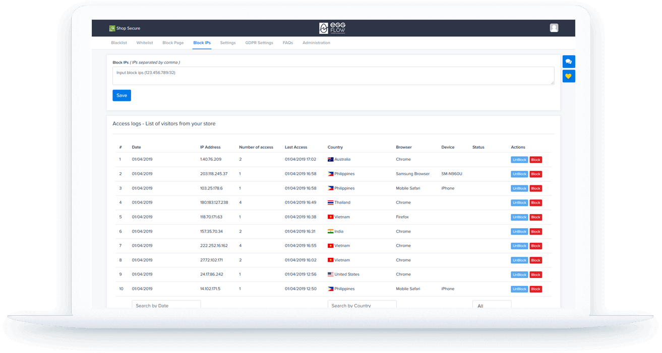 Block a certain visitor with bad transaction history easily just by blocking their IP address.